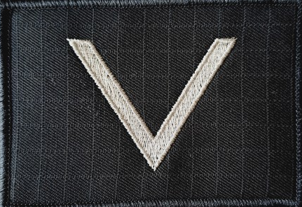 Dystynkcja specjalna SW wykonana jest haftem komputerowym na tkaninie w kolorze stalowoszarym.