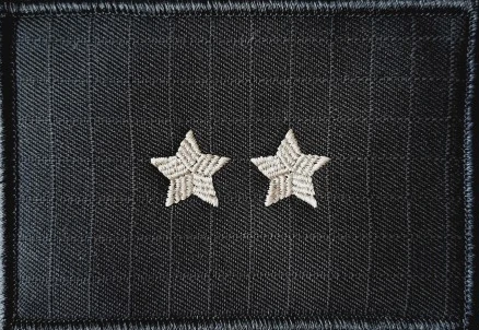 Dystynkcja specjalna SW wykonana jest haftem komputerowym na tkaninie w kolorze stalowoszarym.