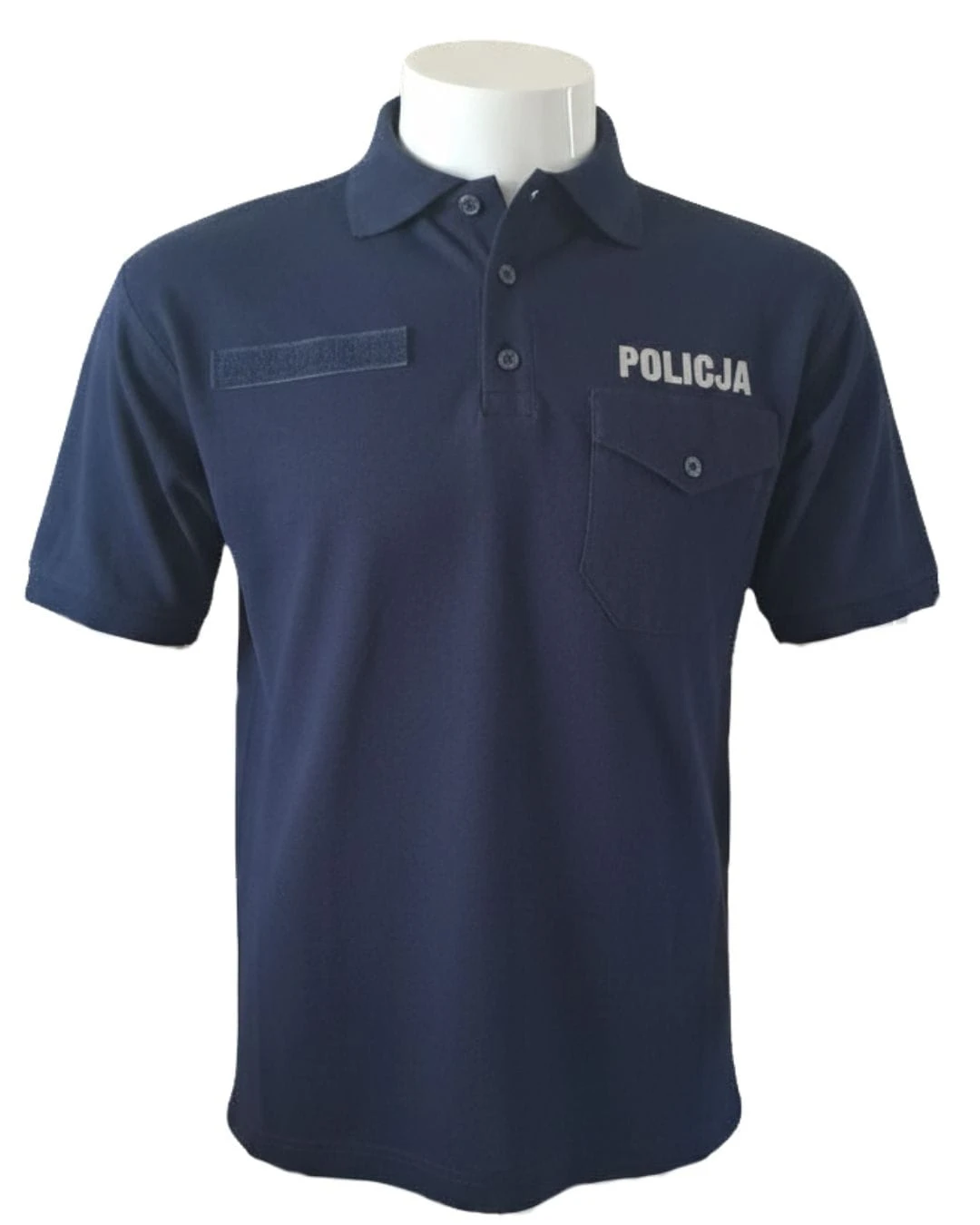 Służbowa koszulka polo unisex, przeznaczona dla funkcjonariuszy polskiej Policji.