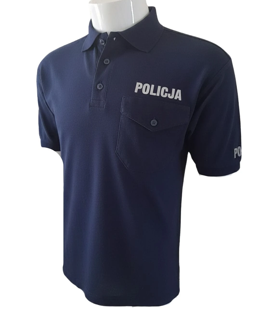 Policyjna koszulka polo, granatowa, bawełniana, uniwersalna.