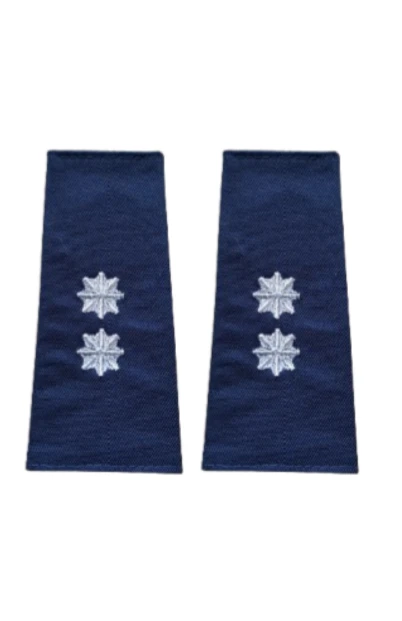 Pagony, pochewki, stopnie naramienne Policji. Wykonane z tkaniny w kolorze granatowym. Oznaczenie stopnia wykonane haftem komputerowym, srebrną metalizowaną nicią.